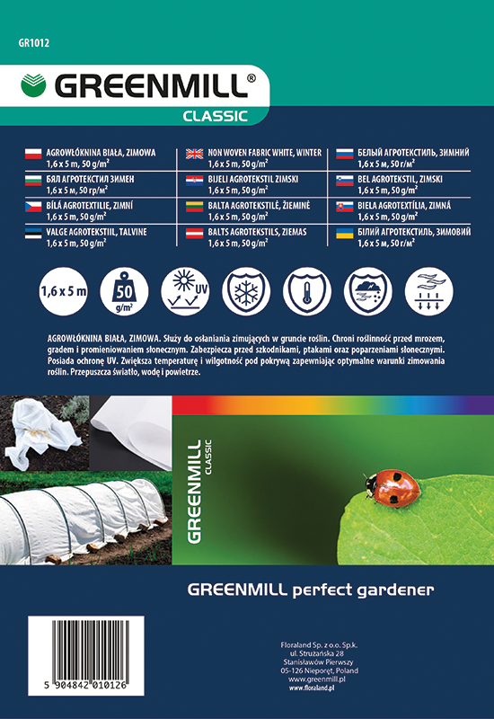 Non wooven fabric white, winter 1,6 x 5m , 50 g/m2 .